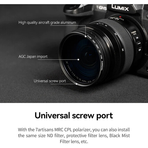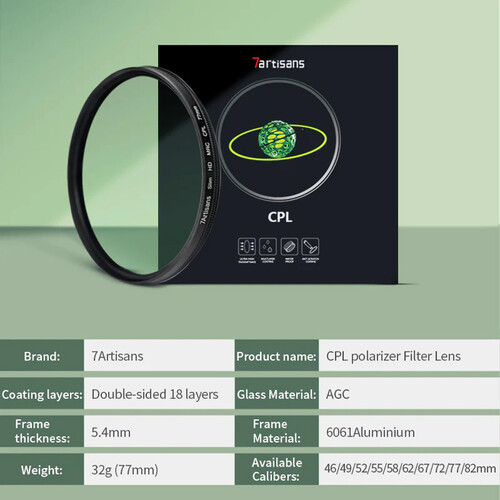 7artisans Slim HD MRC Circular Polarizer Filter is one of the most popular special-effect filters, Deepens the intensity of blue skies, reduces or eliminates glare, Multi-coating reduces reflection ideal for outdoor photography