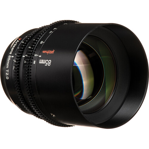 The lens has a 28.4° angle of view and 0.8Mod cinema-standard gears on the focus and iris for intuitive manual controls. Focus distance and iris marks are positioned on both sides of the lens in meters and feet. The 85mm focal length has a minimum focus distance of 2.6'. An 82mm filter thread allows you to attach filters of your choosing to further customize the light quality and effects of the lens.