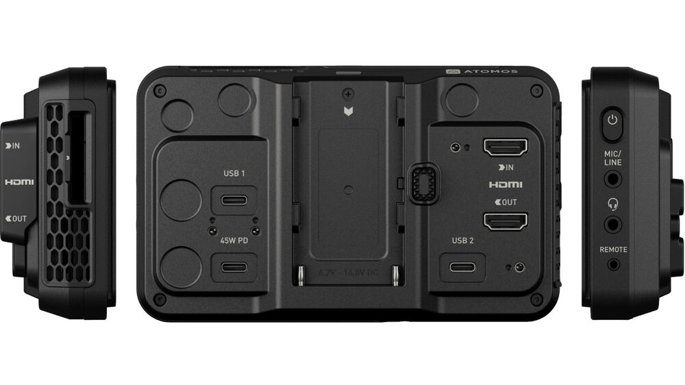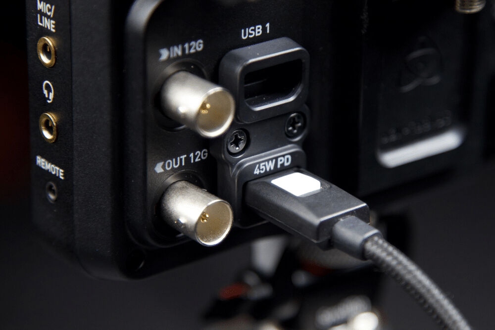 An L-series battery plate on the back of the Ninja RAW can support NP-F L-series batteries. An optional battery eliminator can be used to provide DC power to the monitor.A USB-C port supports 30W PD power delivery with the included cable.