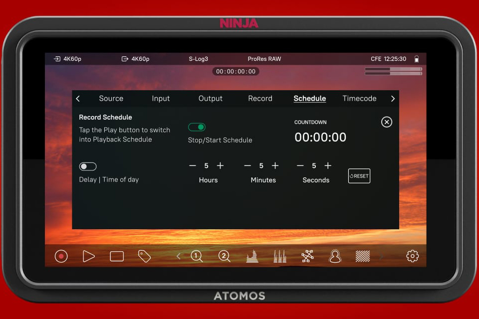 The Ninja RAW offers a comprehensive suite of simple, one-touch monitoring tools for focus, framing, and exposure, including focus peaking, zoom (2:1, 1:1), zebras, false color (including ARRI and EL Zone), frame guides, SMPTE safe areas, grid markers, waveforms, RGB parade, vectorscope, and flexible 3D/1D LUT support with profile and preset options (including .cube file uploads). It also provides anamorphic de-squeeze monitoring to correct the ratio for anamorphic lens setups.