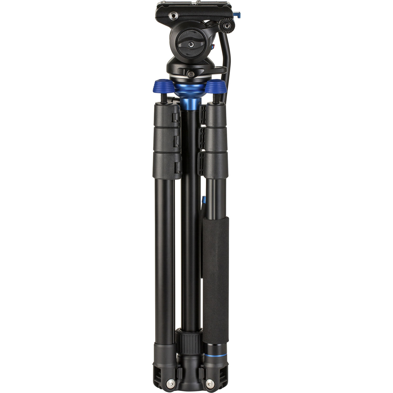 The Benro A2883F Reverse-Folding Aluminum Travel Tripod is a highly compact travel tripod that can be converted to a monopod, while the S4Pro Fluid Video Head features a 60mm flat base with a 3/8"-16 thread that allows moving the head directly to most sliders, jibs, and other support gear. Combined, the two provide a highly versatile travel solution that supports up to 8.8 lb loads.