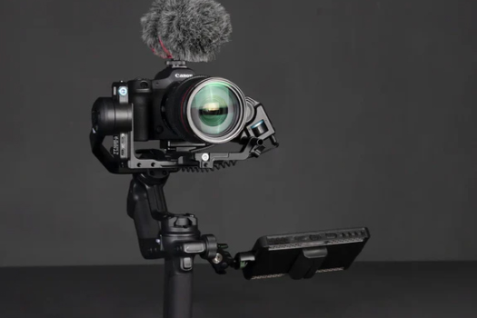 A 1/4" thread and included articulating arm allow you to add a fill light, a microphone, or an on-camera monitor. Additional accessories in the kit include a carrying case, an extension pole, a fill light, and a shoulder strap.