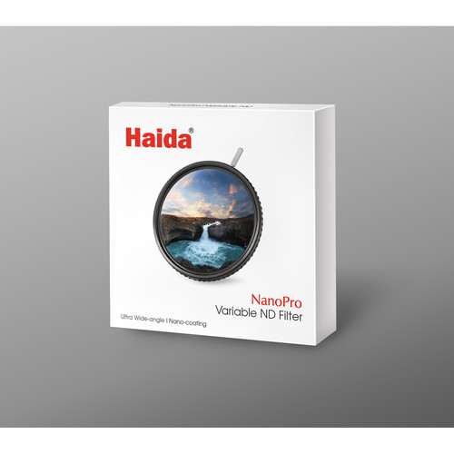 This filter is constructed from optical glass for clarity and color fidelity. To prevent internal ghosting and reflections, each glass surface includes 10 layers of anti-reflection coatings, which also offer greater protection to the filter substrate and help keep it clean for a longer period of time. The Nano coating associated with the Haida 58mm NanoPro Variable Neutral Density 1.2 to 2.7 Filter provides an additional layer that results in an improved beading effect when the surface comes in contact with water or oil, allowing for more efficient cleaning.