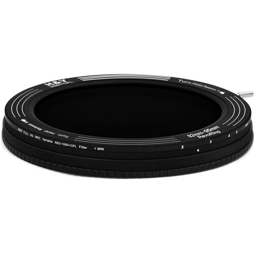 The RevoRing Variable ND3-ND1000 & Circular Polarizer Filter from H&H Filters provides a combination of a variable neutral density filter with a 1.5 to 10 stop increase in exposure, paired with a circular polarizer. The combination of these functions results in a filter well suited to landscape photography and more. The RevoRing is a unique adapter ring with unique self-retracting blade technology with threaded ends to secure to the front of any lens with a filter thread size of 82-95mm. Each threaded blade has been designed to overlap, completely removing any possibility of light leaks.