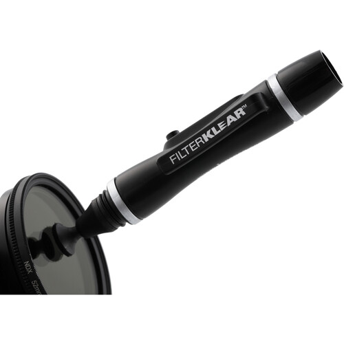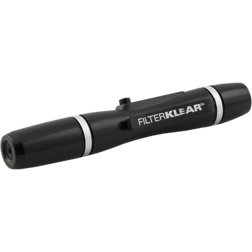 The black FilterKlear Filter Cleaner from Lenspen is a pocketable pen designed to clean digital camera filters in the most effective and safest manner possible. No harsh solvents or abrasives are employed. On one end of the FilterKlear is the cleaning tip which contains microscopic 'invisible" carbon particles that you cannot see. This carbon can absorb and remove fingerprint oil and smudges from your filter. On the other end of the FilterKlear is a soft retractable brush that can dislodge dust that's on top of a filter.