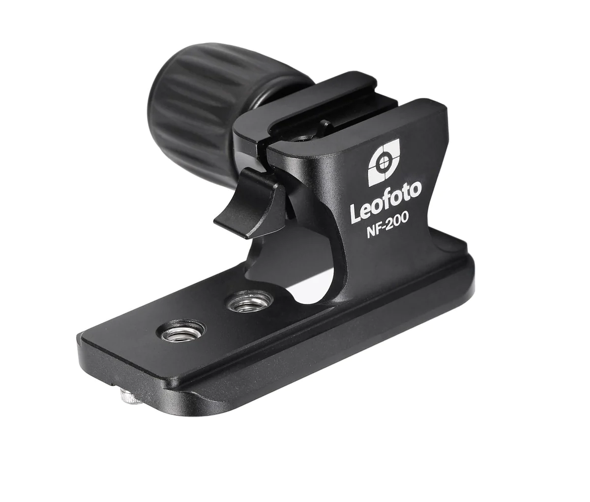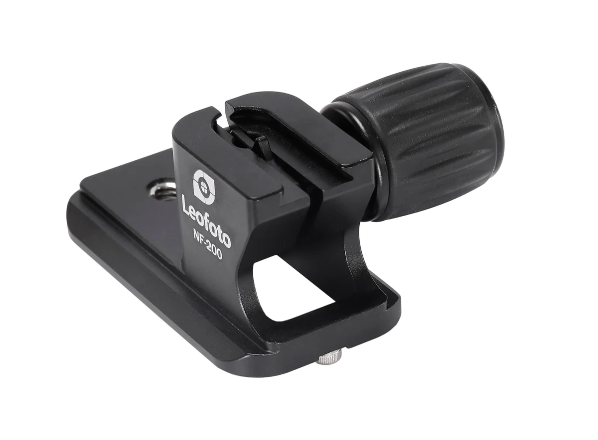 Aiming to improve on the default design, the Leofoto NF-200 is an alternative lens foot for the Nikon AF-S 70-200 mm f/2.8G ED VRII. This larger lens plate can securely fix a lens onto any Arca-Swiss compatible tripod head. Attach the NF-200 lens base under the lens at the location of the original replaceable lens base and secure with large rotary knob to provide a lower profile and a lower center of gravity for a better balance. Two safety stops are located on the bottom of the foot, which prevents accidental lens release when a quick release receiver clamp is partially open.