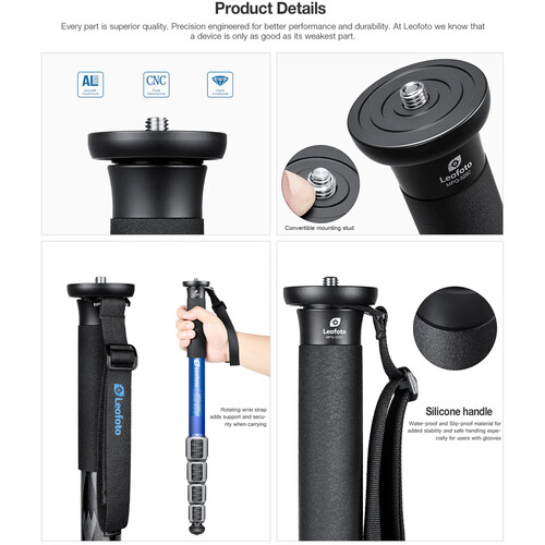 Experience the pinnacle of monopod performance with the Leofoto MPQ-325C Carbon Fibre Monopod. Invest in a monopod that not only meets but exceeds your expectations, allowing you to focus on what truly mattersâyour creative vision. Elevate your photography and videography with Leofoto and discover new perspectives with every shot.