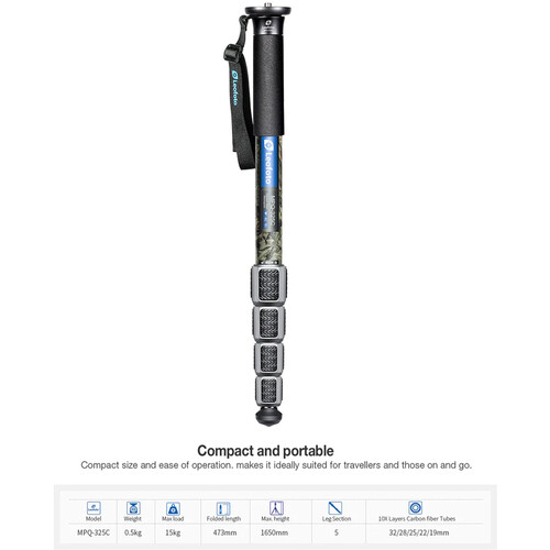 Compact Folded Height: With a folded height of just 473mm, the MPQ-325C is incredibly compact, making it ideal for travel and storage. This compact size ensures that the monopod can be easily packed away without taking up much space, making it a convenient accessory for any photography or videography kit.