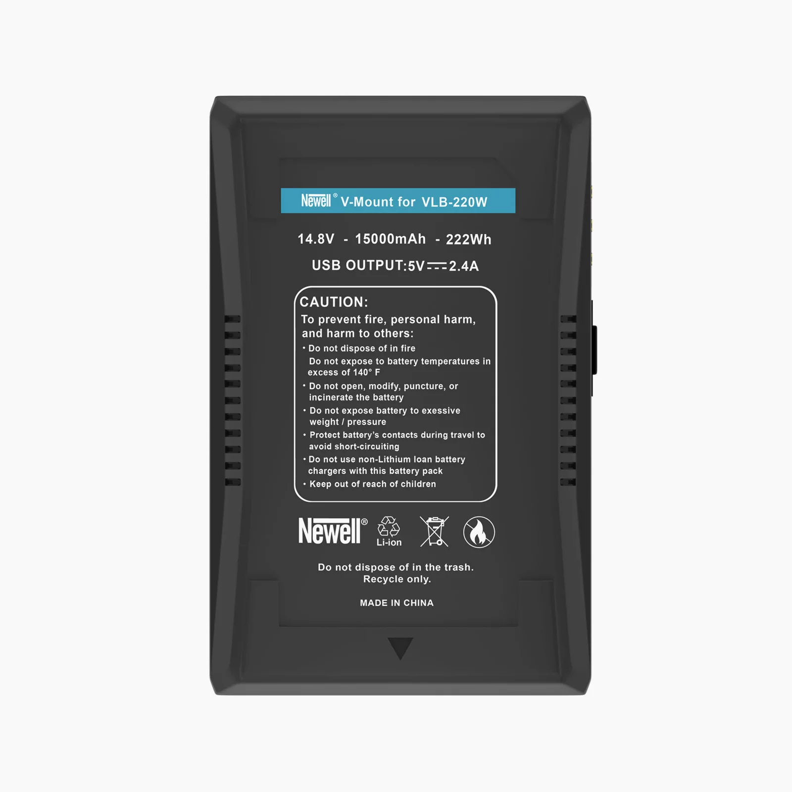 The Newell VLB-220W TES V-Mount provides high quality, safety and advanced technology, all at an attractive price. The V-Mount (V-Lock) battery pack fits many different types of lighting.