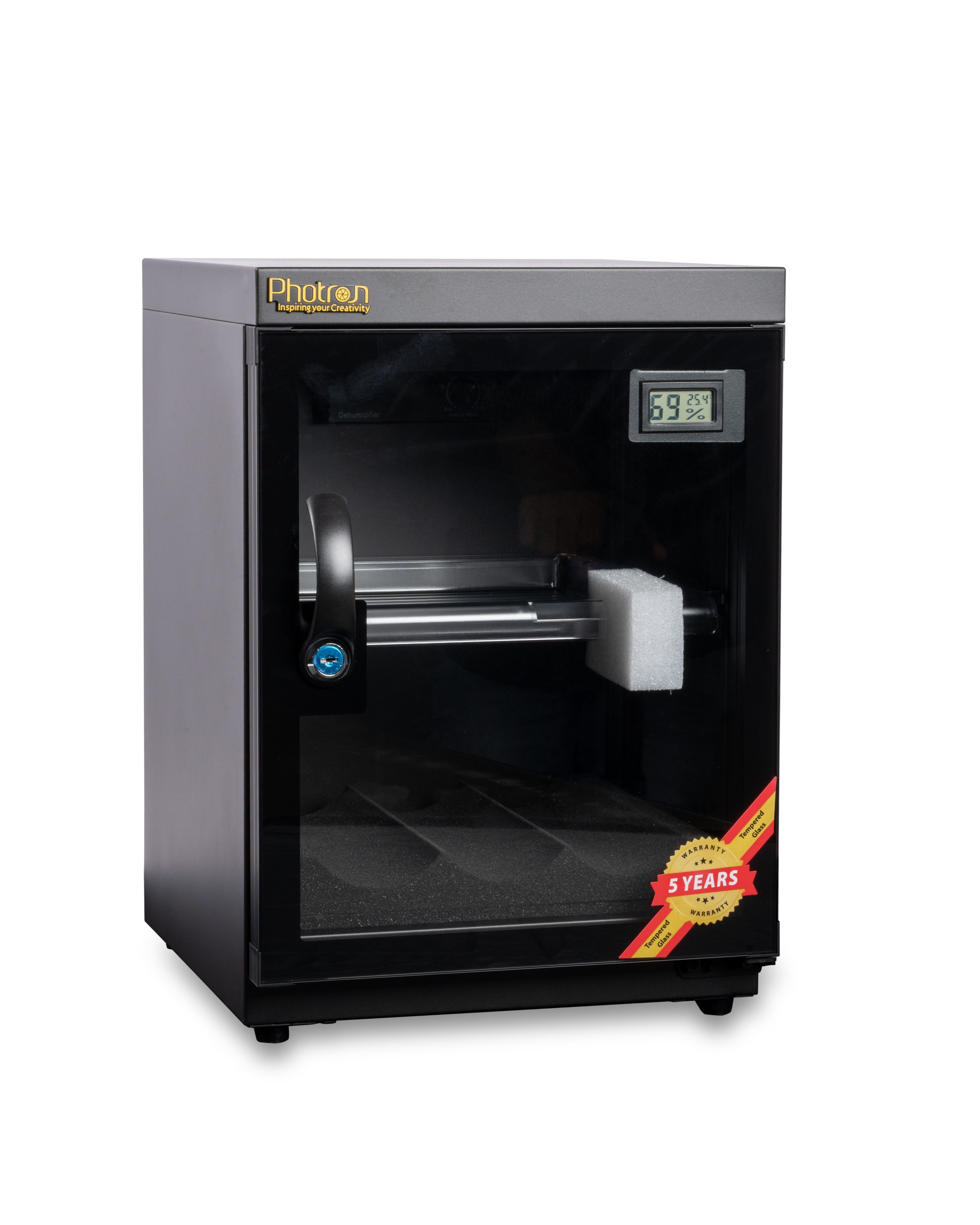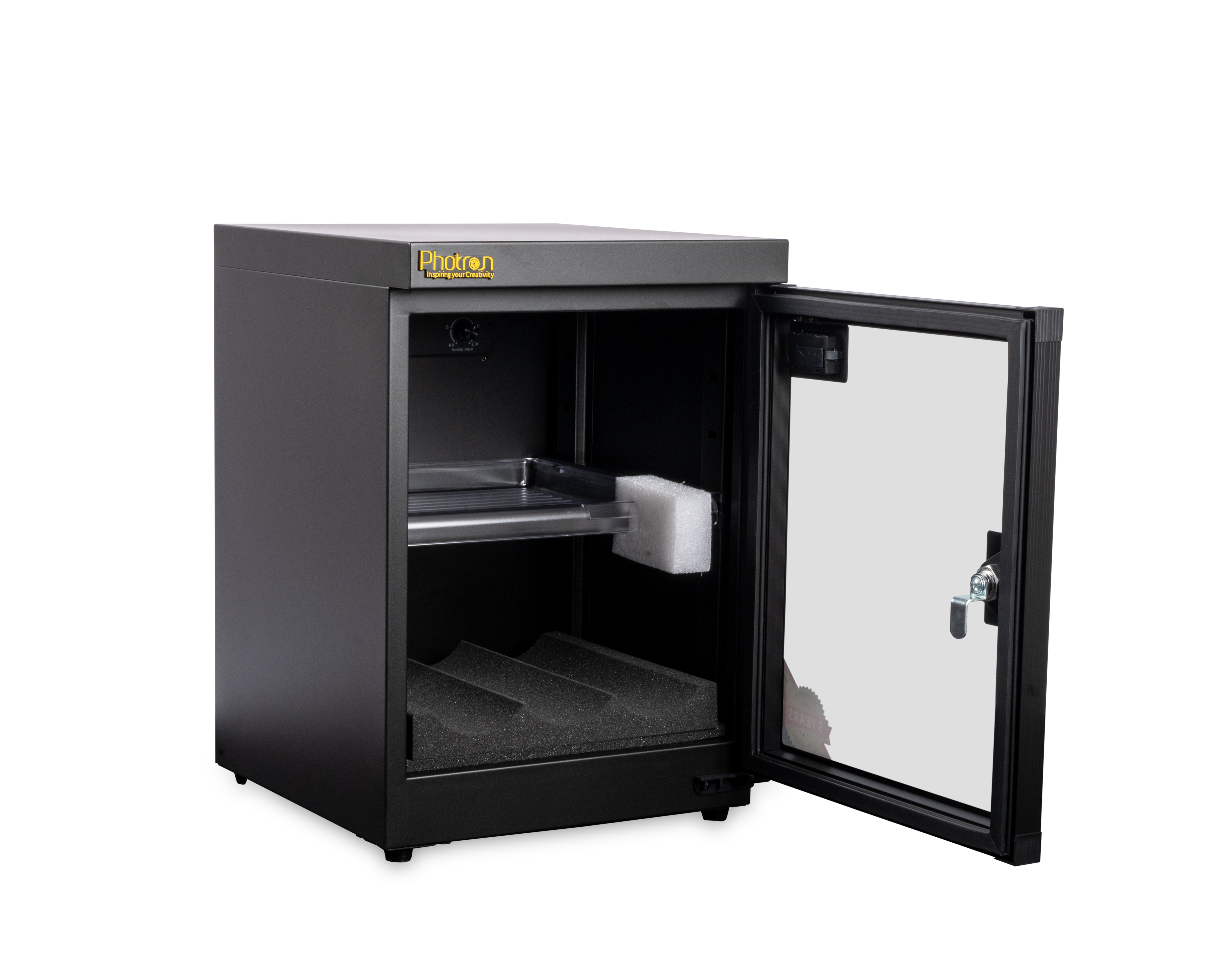 Protect your lenses, photographic and optical equipment, mobile electronics, and other valuable accessories from excessive moisture, dirt, and dust with the Photron Electronic Dry Cabinet. The cabinetâs fast-acting TE Cooling Wafer regulates the interiorâs relative humidity to help prevent fungus and corrosion that can damage your gear. Humidity adjustments take place over a 1- to 3-hour period.