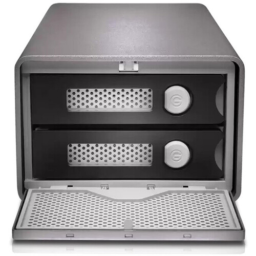 Designed to provide flexibility and reliability for demanding applications, the G-RAID 2 40TB 2-Bay RAID Array from SanDisk Professional is a fast, high-capacity storage solution that supports multi-stream HD, 2K, 4K, and HDR video workflows. Equipped with an overall capacity of 40TB that is made of up 2 x 20TB 7200 rpm Ultrastar Enterprise-class hard drives, the G-RAID 2 delivers data transfer speeds of up to 480 MB/s. In terms of connectivity, this array is equipped with two 40 Gb/s Thunderbolt 3 ports, one 5 Gb/s USB-C port, and one HDMI port. While host connectivity is achieved using one of the Thunderbolt 3 ports or the USB-C port, the second Thunderbolt 3 port remains available for daisy-chaining up to five additional devices, including drives, 4K displays, and more, all through a single cable connection.