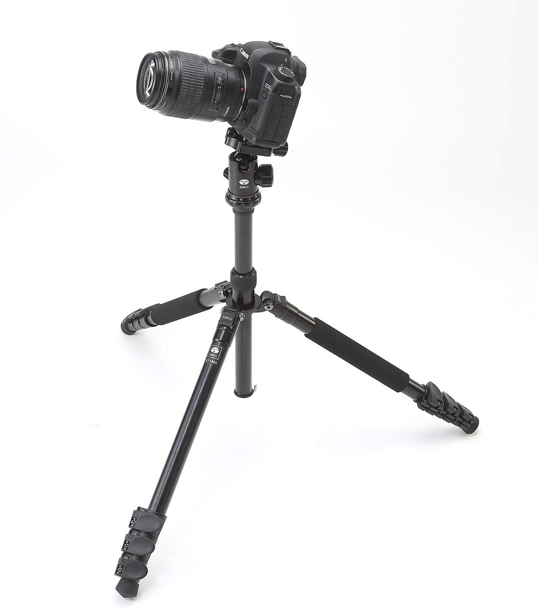 With the center column extended, the tripod’s maximum height is 55″ The tripod weighs 3.0 lb and can support up to 18 lb. An included short center column allows for changeover to shoot macro or from low angles. Also, the center column can be inverted to shoot from under the tripod.