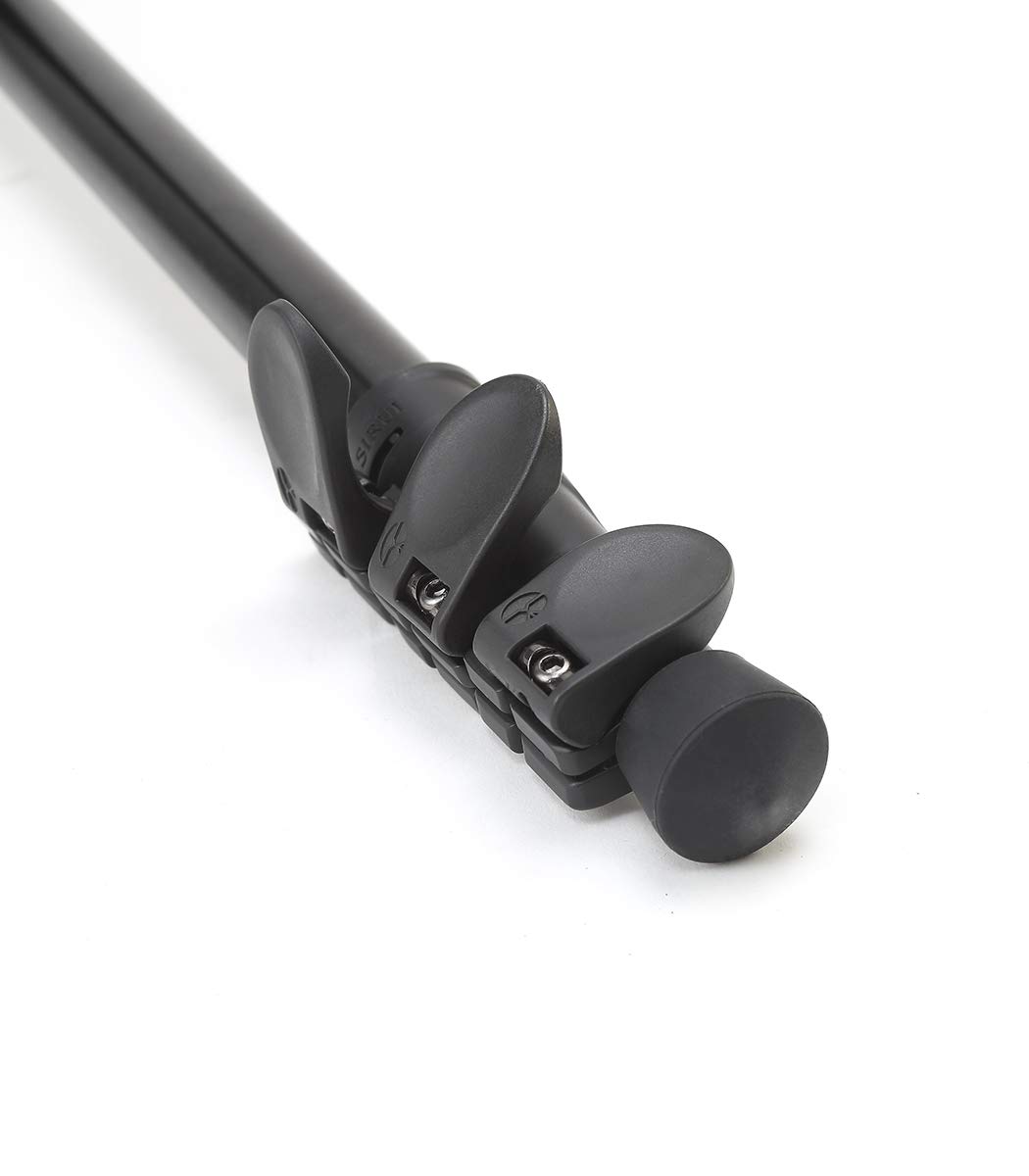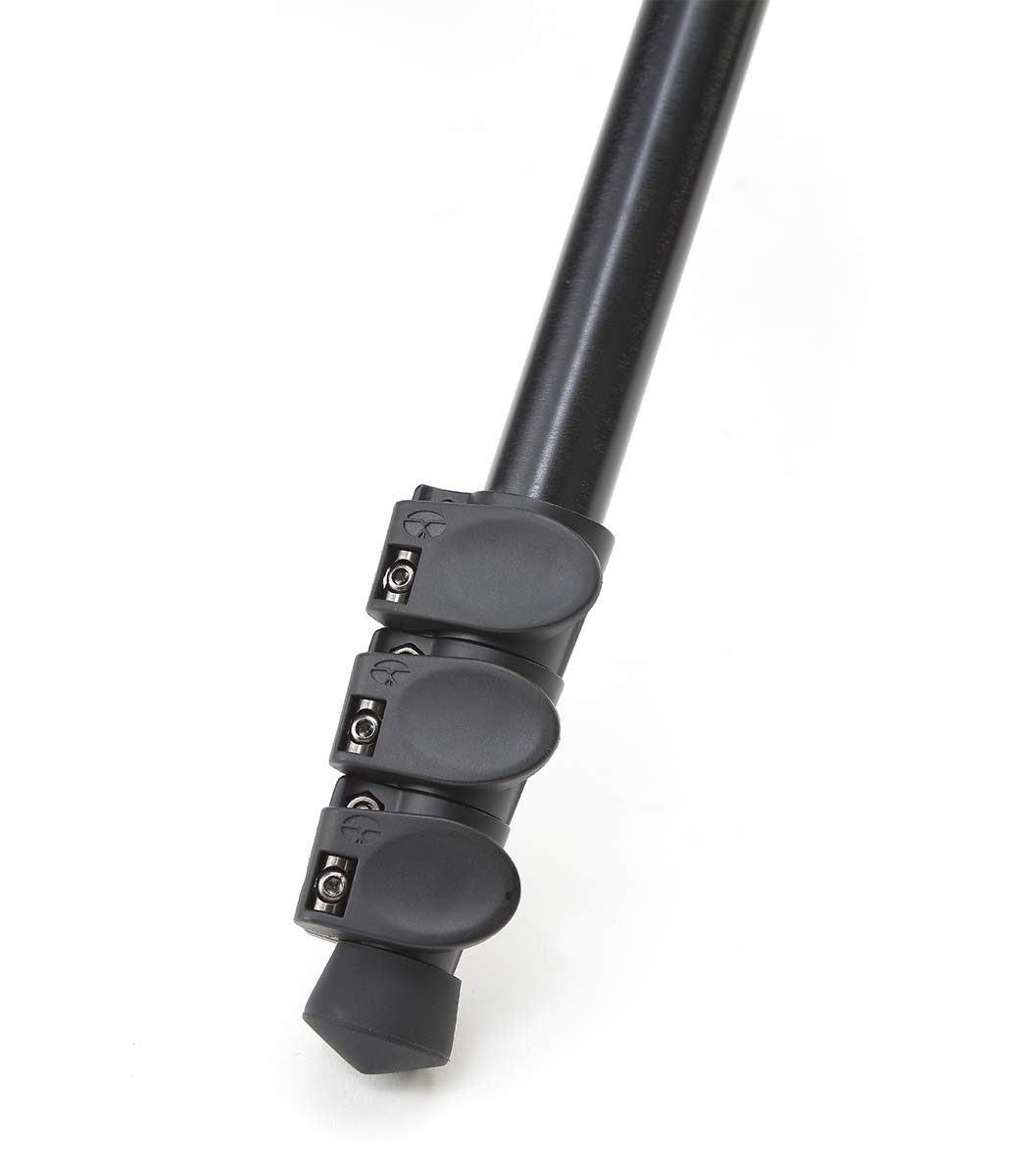 The 4-section legs feature flip locks for easy adjustment and each leg can be independently placed at three position angles and automatically lock in place for secure shooting on uneven ground. The legs on the ET-1004 fold up 180º for compact storage and transport; its folded length is just 16.5″. The tripod’s rugged spider is made from forged aluminum alloy and the legs are made from economical aluminum alloy for stability, performance and longevity.
