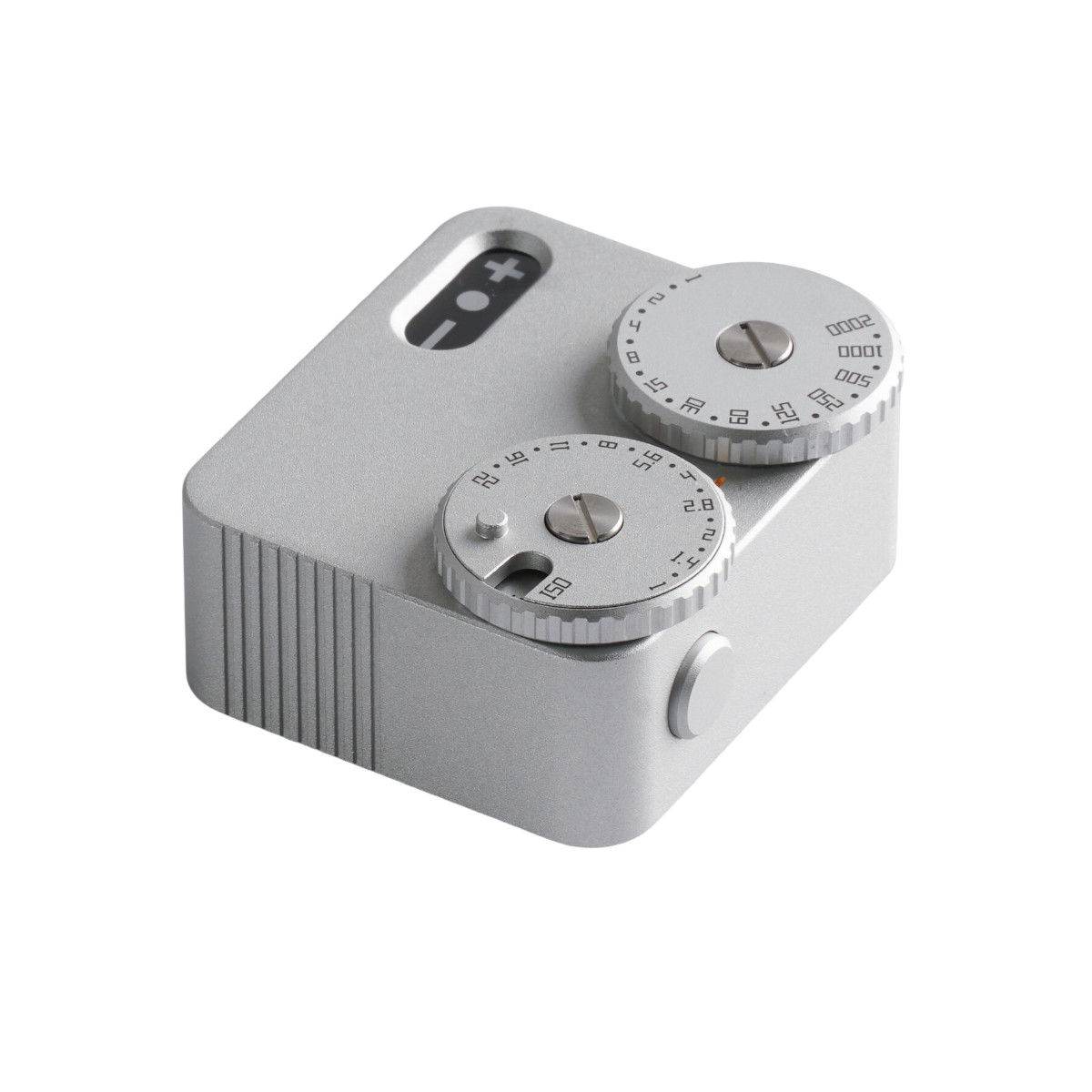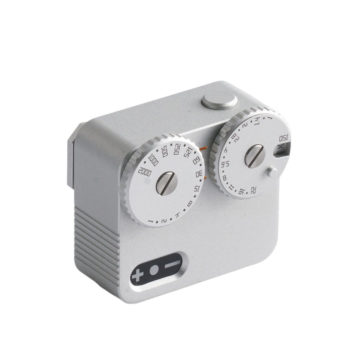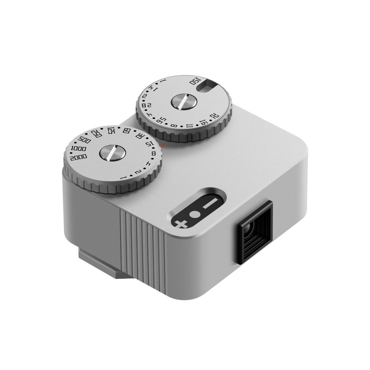 The black, aircraft aluminum TTArtisan Light Meter II is an ultra-compact, cold-shoe mountable light meter designed for analog film cameras. With its sleek, retro profile, it offers simple operation via two easy-access dials and supports shutter speed readings of 1 to 1/2000 of a second, ISO of 25 to 6400, and apertures of f/1 to f/22, all in half-step increments.
