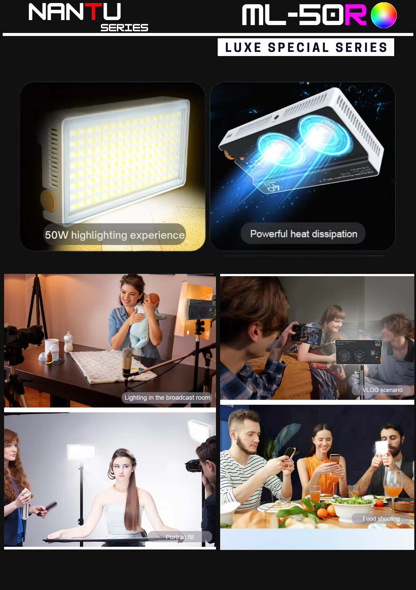 ML-50W POCKET LED LIGHT FOR CONTENT CREATION, PHOTOGRAPHY AND FILM SHOOTINGS.